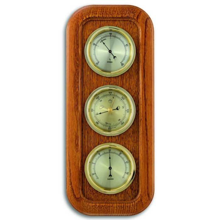 Ця метеостанція з масиву дуба - ідеальне втілення традиційного і позачасового ексклюзивного стилю інтер'єру. Метеостанція складається з барометра, термометра і гігрометра.
