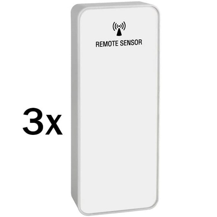В комплекті 3 бездротових датчика для контролю температури і вологості повітря в 4-х приміщеннях в цілому