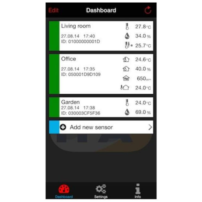 Підтримка до 50 зовнішніх бездротових датчиків з можливістю передачі даних на інші смартфони