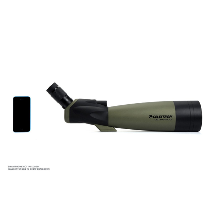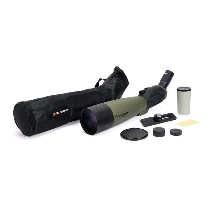 Зорова труба Celestron Ultima 100 мм має злам оптичної осі на 45° для комфортних спостережень і пропонує велику апертуру в порівнянні з 80 мм, забезпечуючи на 50% яскравіше зображення. 80-міліметровий рефрактор оснащений чудовою оптикою з багатошаровим покриттям і стандартно постачається з окуляром з 22-66-кратним збільшенням.